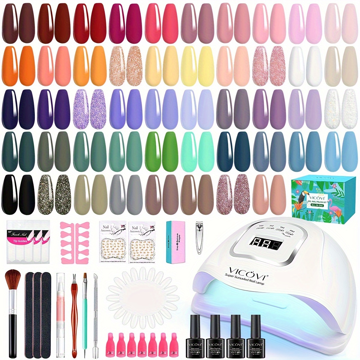 48 Colors Gel Polish Set with 36W Nail Light Curing Lamp – Lead-Free, Unscented, Soak-Off Base Coat & Top Coat – DIY Gel Nail Kit for Beginners at Home with Manicure Tools – vicovi Gel Nail Set
