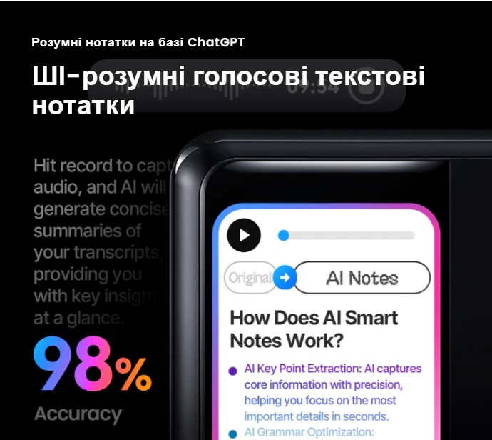 Need records for work or study? Meet your ideal partner for capturing information. It supports voice-to-text in 62 languages, features long-distance recording up to 40 meters, and includes a 3-MIC array with AI-driven noise reduction.